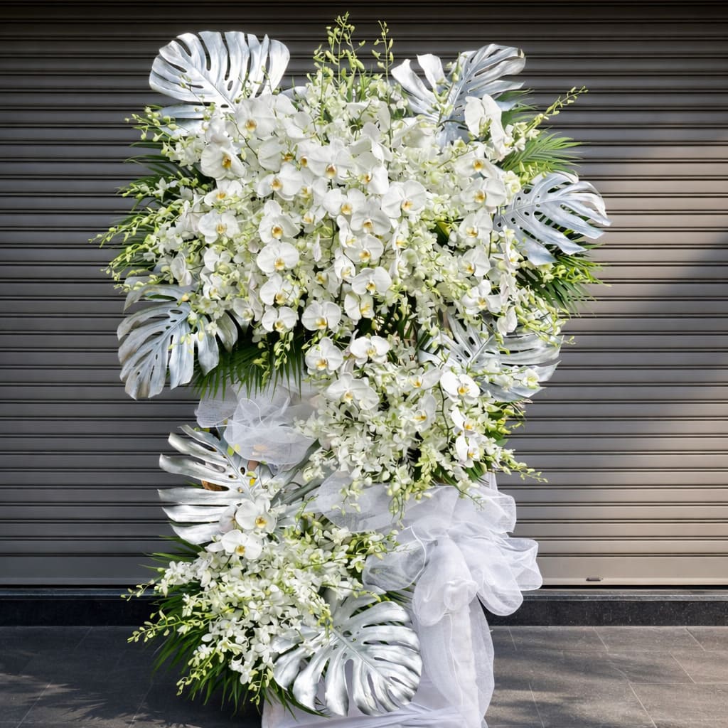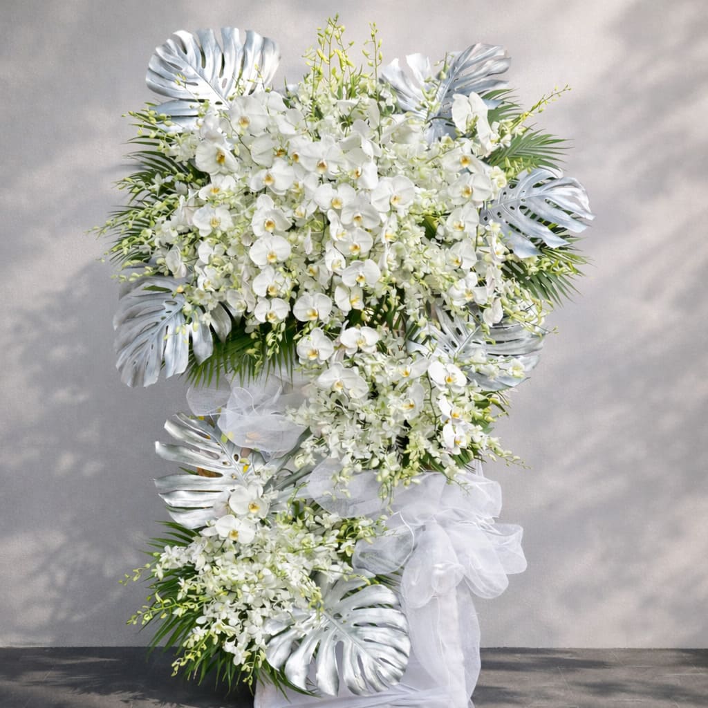 Kệ Hoa Chia Buồn Vĩnh An – Lan Trắng Thuần Khiết Gửi Trọn Lời Tiễn Biệt